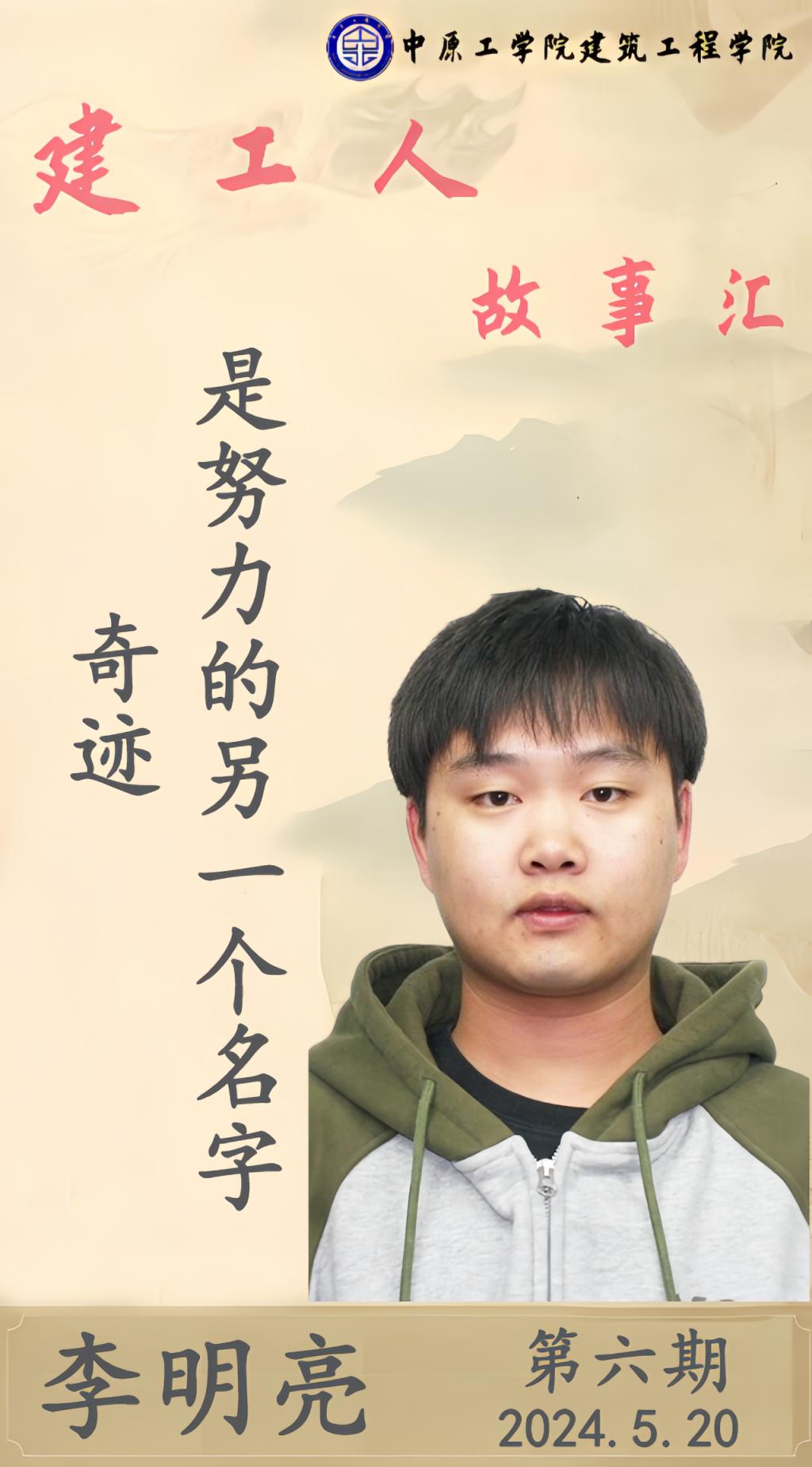 李明亮,男,汉族,中共党员,2017年9月至2021年6月在VSport体育官网取得学士学位,期间担任英语沙龙协会社长、班级学习委员;2021年9月至今在VSport体育官网建筑工程公司攻读土木水利专业硕士学位,目前已成功考取河南理工大学的博士研究生。