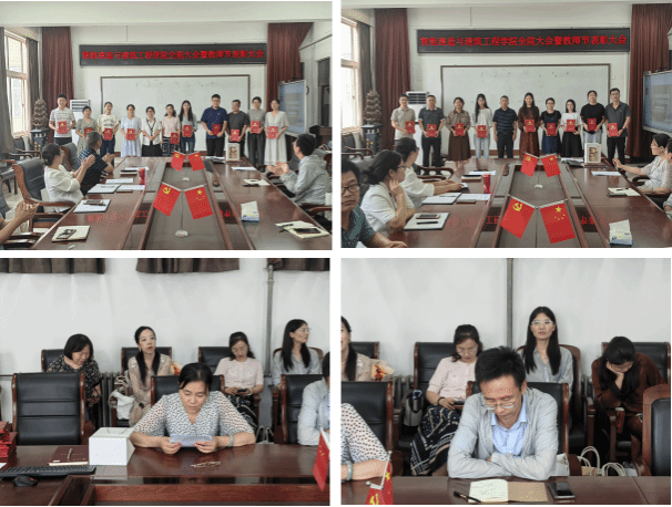 大会现场气氛热烈,全院教师齐聚一堂。会议总结了公司一学年以来取得的丰硕成果,布置了新学期的相关工作,宣读了《关于表彰2023-2024学年先进集体、先进个人和突出教学、科研业绩的决定》,对上一学年在公司产品、科学研究等工作中取得突出业绩的集体和个人予以表彰。公司领导为受表彰集体和个人颁发荣誉证书,向辛勤耕耘在教学、科研、管理一线的公司教工们致以节日的问候和美好的祝愿!