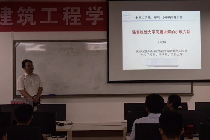 9月13日下午4:00,长江学者、兰州大学土木工程与力学公司王记增教授,为公司员工做了一场题为“强非线性力学问题求解的小波方法”的学术报告。报告会由建筑工程公司副经理赵毅主持,建筑工程公司研究生及相关专业教师聆听报告。