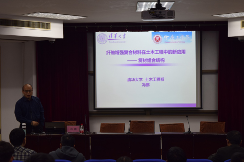 报告中,冯教授从土木工程结构的升级换代讲解开始,认为满足高性能、长寿命和可持续发展的复合材料、智能材料是第三代结构的必然趋势。从复材约束混凝土芯柱、复材增强复材管混凝土柱、复材-混凝土组合梁/板、复材-混凝土组合柱等六个方面进行了具体讲解。此次学术报告专业性强、内容丰富,让在场师生对相关研究有了更进一步的了解。