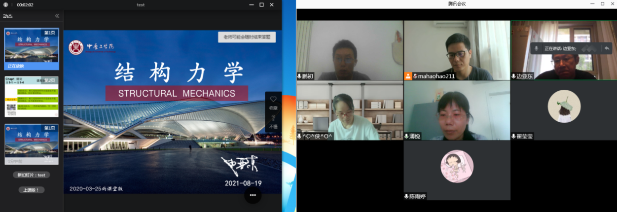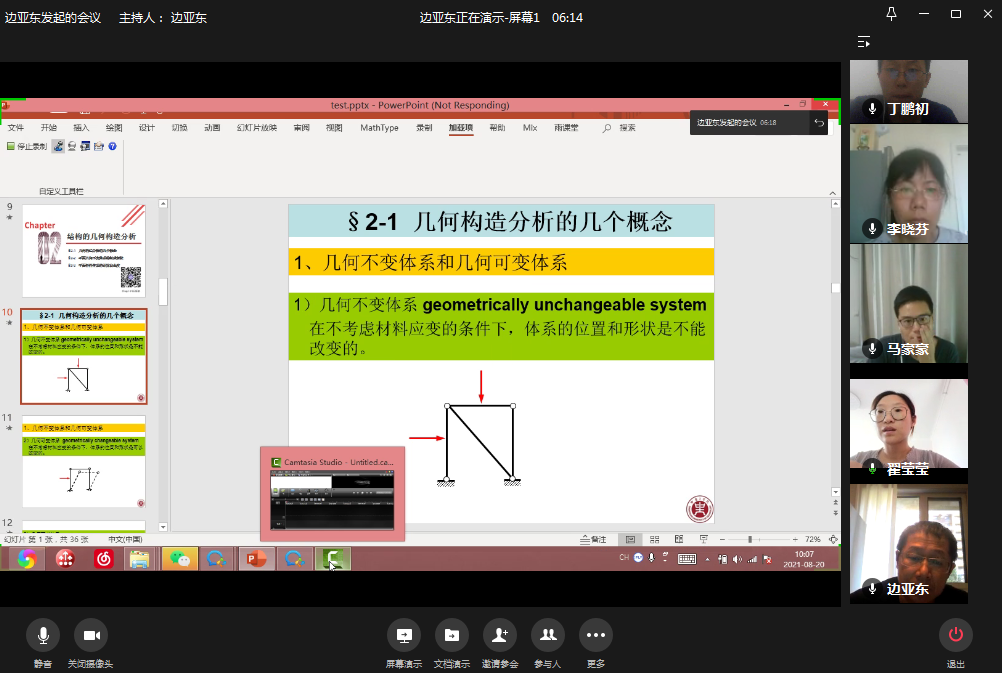 面对严峻的疫情形势,根据上级有关部门关于2021年秋季学期开学事宜的相关要求,工作室提前筹划,认真研讨。对购置的线上授课辅助设备进行培训,对前期参加公司组织的雨课堂培训进行总结,并以《结构力学》为例对线上教学过程中可能出现的问题通过企业微信和腾讯会议进行视频演示、交流。通过此次会议,工作室老师共同解决了线上教学存在的困扰问题,纷纷表示会严格按照课程目标,尽可能丰富教学手段,提高课堂教学效果。