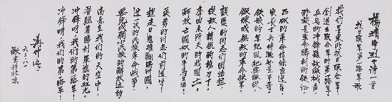 在辽宁省博物馆最近展出的“笔墨映丹心”中,曾任东北抗日联军第三军政治部主任冯仲云手抄的《抗日联军第一路军歌》,展现了东北抗日联军英勇不屈的斗争精神和豪迈气概。