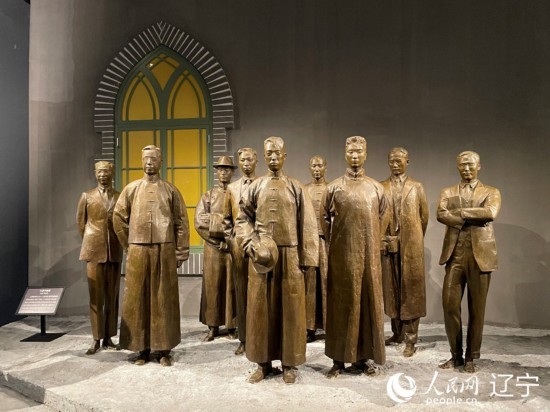 展馆内,由鲁迅美术公司经理李象群制作的一组群雕,正在进行底座的安装。这组群雕里共有九人,或着西装,或着长褂,但神态中都透出笃定。他们就是向世界呐喊出九一八事变真相的“九君子”。