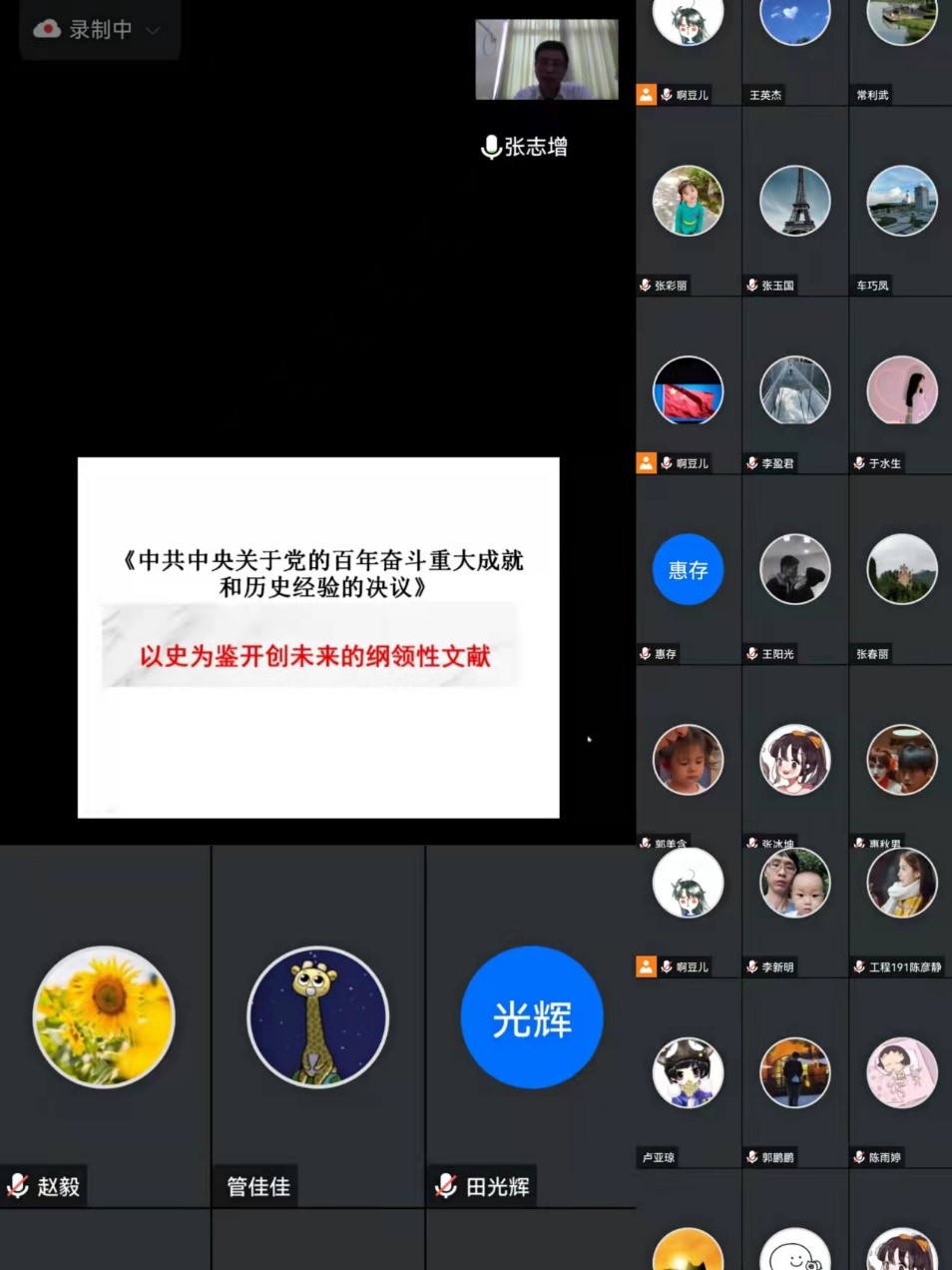 为深入学习贯彻党的十九届六中全会精神,进一步引导公司党员认真领会全会精神的丰富内涵与核心要义,12月17日中午,公司党委书记张志增以视频会议的形式为班子成员和各支部委员做了题为《以史为鉴开创未来的纲领性文献》的报告。