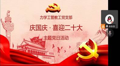 土木工程教工党支部和力学工管教工党支部也通过线上线下相结合的方式组织开展了“喜迎二十大,永远跟党走,奋进新征程主题党日活动。全体党员积极参加,踊跃发言,结合自身工作讲解了自己今后努力的方向和存在的不足。