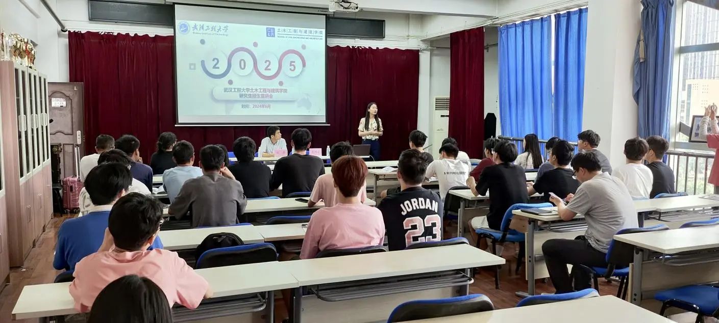 吴经理为公司考研学子详细介绍了武汉工程大学土木工程与建筑公司发展历史、人才队伍、办学定位、学科优势等基本情况,并详细解读了武汉工程大学的招生政策,分析近年来土木工程专业的考研形势。她表示,武汉工程大学学科体系完备,团队力量雄厚,科研环境优越,已形成本硕博完整的人才培养体系,希望同学们根据自身实际情况和学术兴趣选择适合自己道路。
