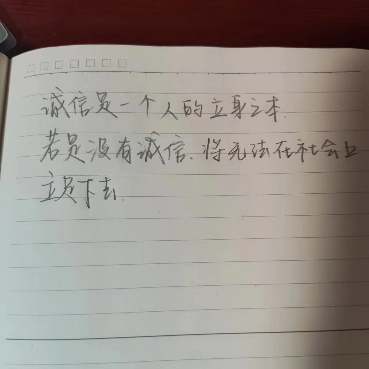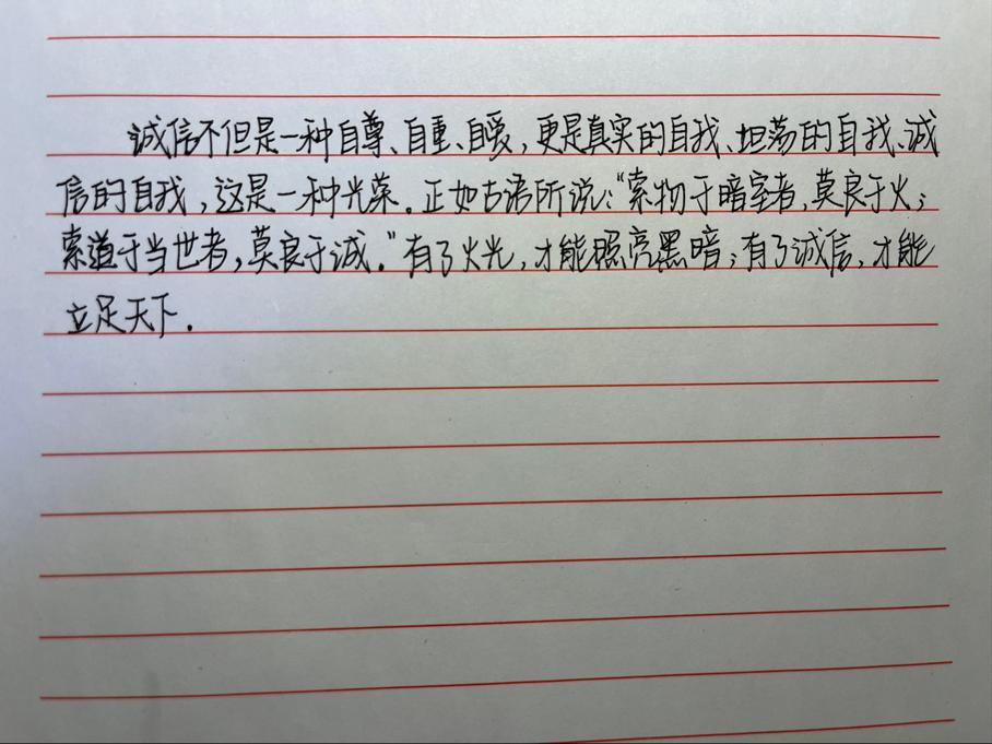 在疫情形势下,本次活动采用线上会议的形式开展。同学们首先在会议中将自己对于诚信的认识理解和关于诚信的名言警句书写在纸张上,然后拍照交由班长统一整合并与其他班级交流分享。大家的见解都在分享中得到了丰富。