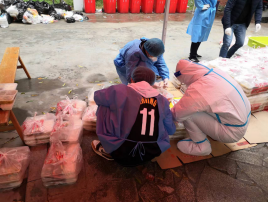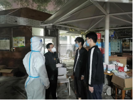 叮铃铃叮铃铃......6:20的闹钟叫醒了沉睡的韩优峰同学,他抓紧洗漱,做好个人工作后迅速到北5楼下,教师志愿者早已在楼下等着他。为保障安全,他在教师的指导下,科学规范穿戴防护服、佩戴N95口罩、防护面罩、医用外科手套。防护做好后,跟随教师志愿者开始紧张繁重的工作:喊楼、做核酸、维持秩序、分餐、打包、送餐、发中药、发放捐赠物资、防疫消杀、清运垃圾……上上下下,不停奔波。经过几个小时的连续奋战,体验活动结束了,薄薄的防护服让他体会到这个初冬最特殊的桑拿感,他在教师指导下脱去防护服感叹道“这次志愿者体验让我深刻的认识到志愿者的工作是很累很辛苦的,不亲身体验是无法明确理解的”,他离开后,我们的教师志愿者团队在短暂休息后带着下一位体验者开始新一轮的战斗。