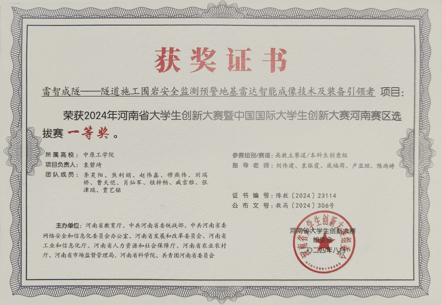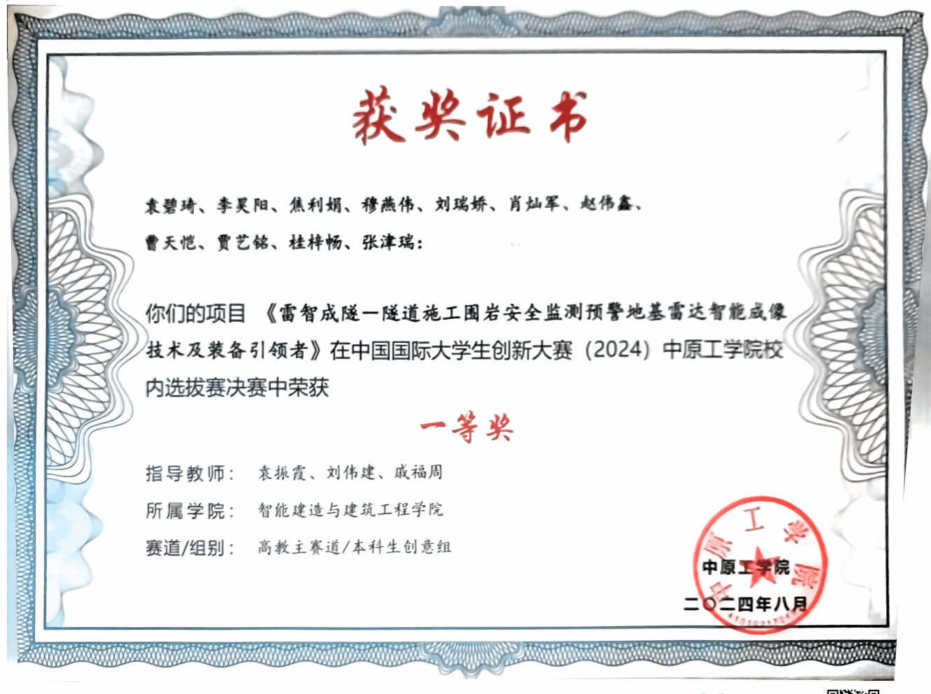 谈及未来,袁碧琦表示,自己在积极准备研究生考试的同时,也会和团队继续开展创新研究工作。他们将以“雷智成隧”项目为依托,开发隧道围岩智能监测预警装置,努力将隧道雷达技术广泛应用于工程现场。袁碧琦常说:“老员工创新不是一个人的事,那些奖项和荣誉,是团队共同努力的结果。这意味着山区工人能因我们的系统提前撤离危险区、中小工程也能用得上百万级精度的国产设备、中国制造在智能建造领域又多了一项自主技术。真正的创新是团队携手,让每个平凡的施工现场都有科技护航。我愿和团队一起,做那一群左手紧握工程规范,右手执掌创新利剑的土木人,在创新之路上永不止步,守护山河无恙!”
