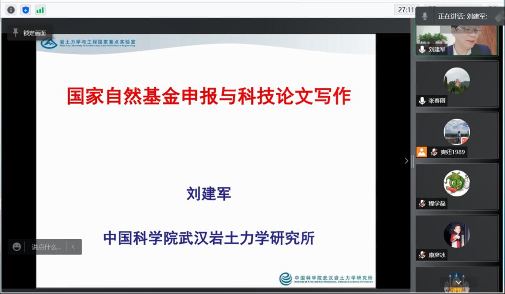 2021年11月7日上午,应公司科技处和建筑工程公司邀请,国家自然科学基金会评专家、中国科公司武汉岩土力学研究所刘建军研究员为公司师生做了《国家自然基金申报与科技论文写作》线上学术讲座。讲座由建筑工程公司副经理张春丽主持,公司自然科学相关专业的教师、研究生和部分本科生进行了在线收听。