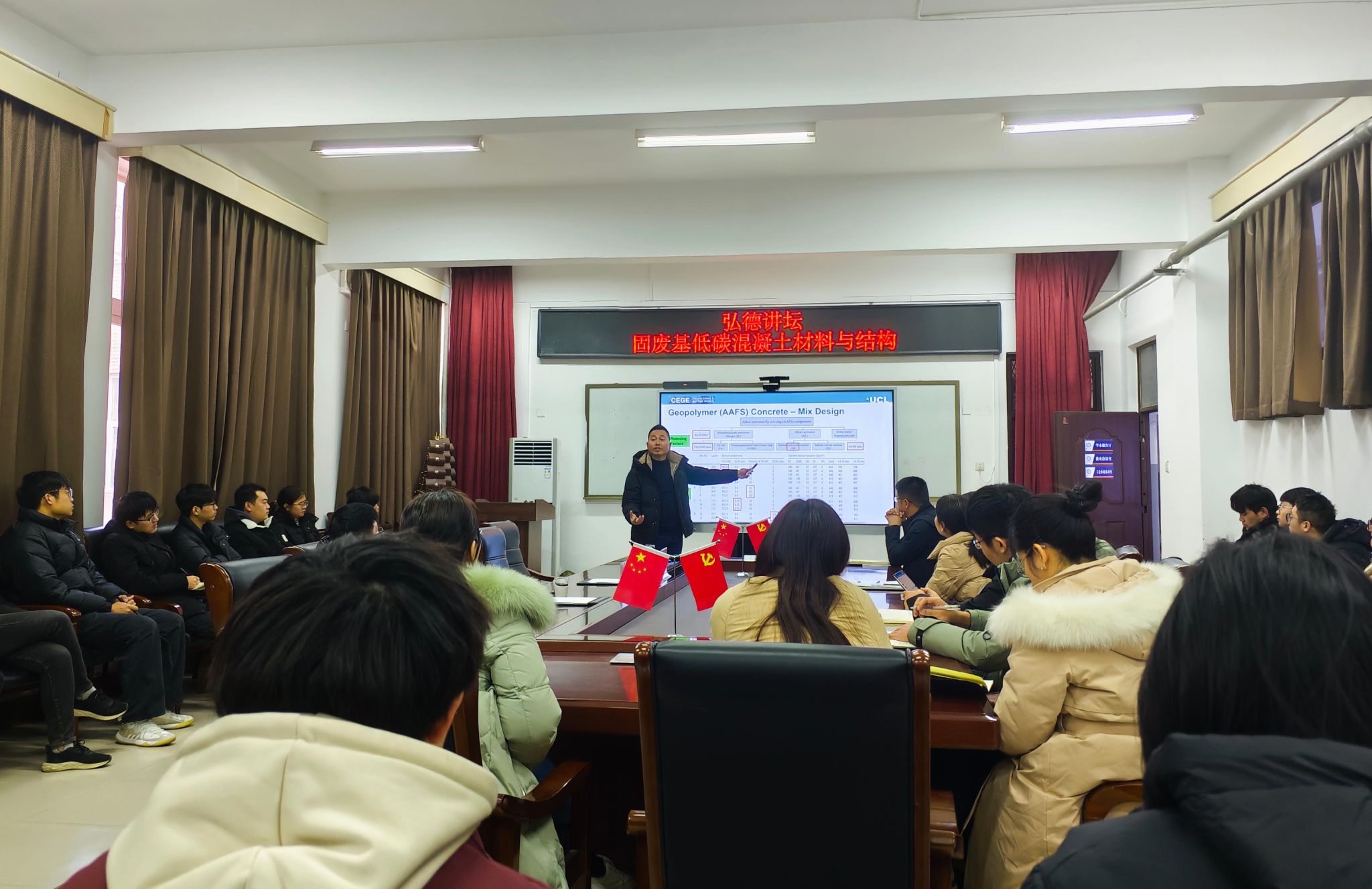 最后,两位报告人针对师生提出的问题进行了细致和专业解答,并就低碳建筑材料的发展、试验设计的思路方法和研究生考博升学等问题进行了交流。
